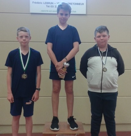 Filles : 1e MAFILLE Alanis (ALBERT-BRAY USO TT) - Garçons : 1e DUBURCQ Simon (AMIENS STT) 2 GAMARD (LONGUEAU ESC) 3e REVAUX (AMIENS STT) 4e BOQUET (ALBERT-BRAY USO TT)