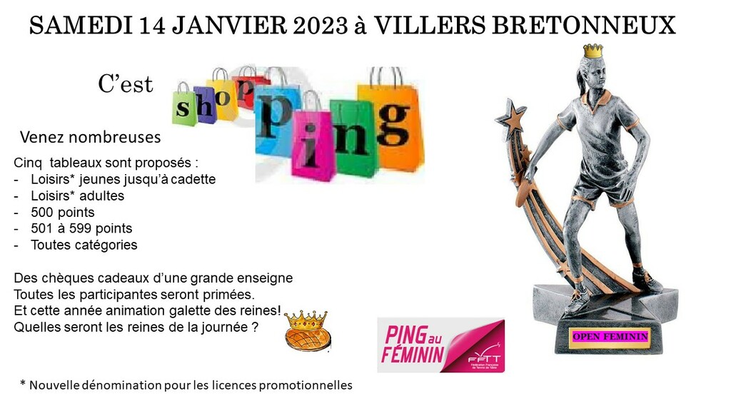 Le formulaire d'inscription ( fichier EXCEL) à l'OPEN Féminin du 14/01/2023