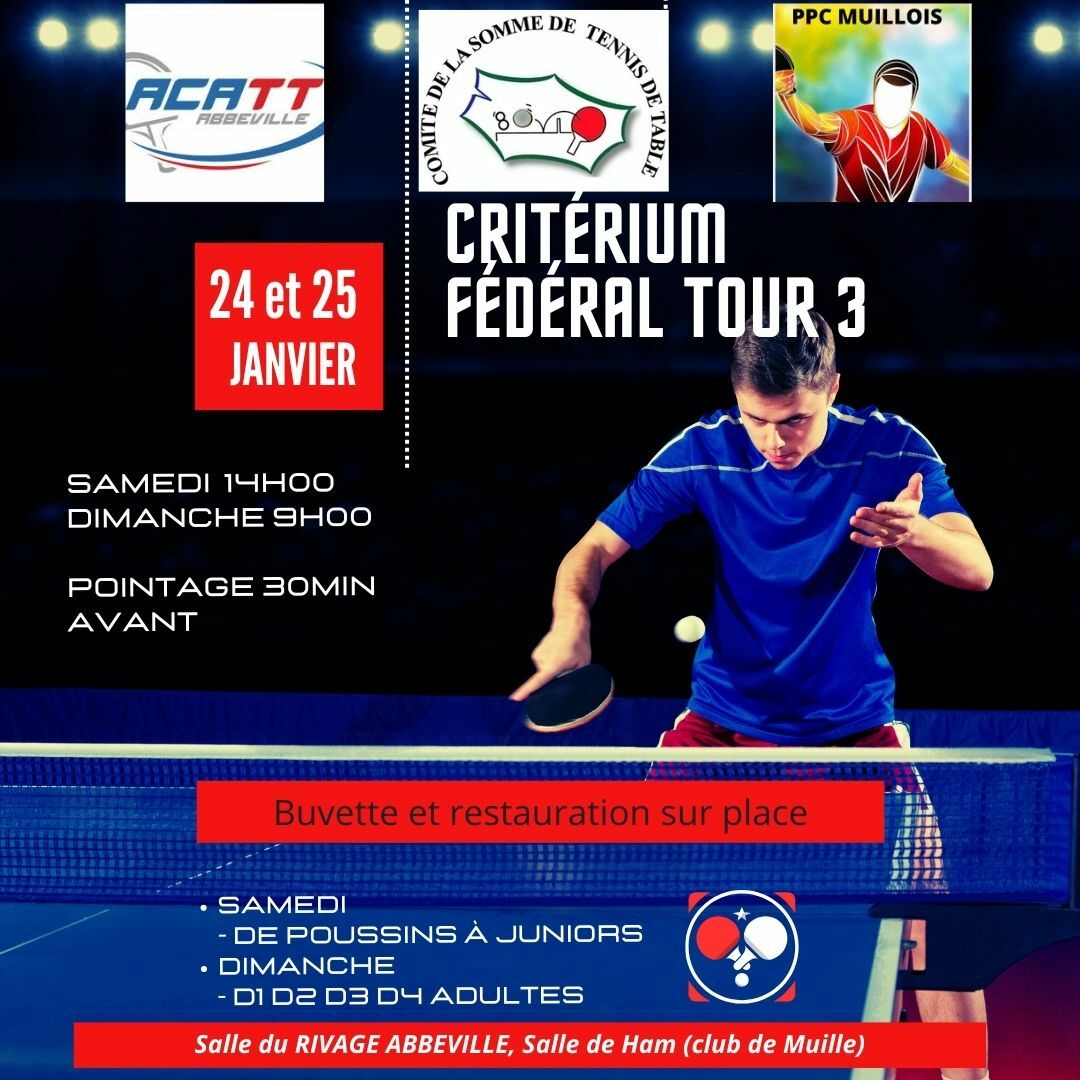 3 eme Tour du Critérium Fédéral Echelon Départemental les 24 et 25 Janvier 2026
