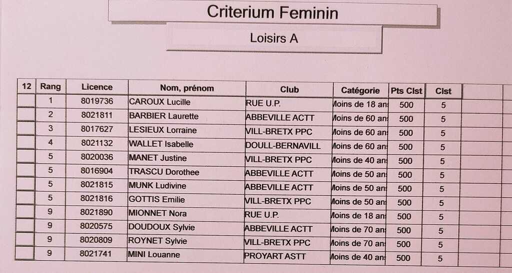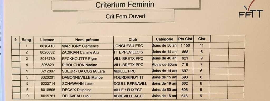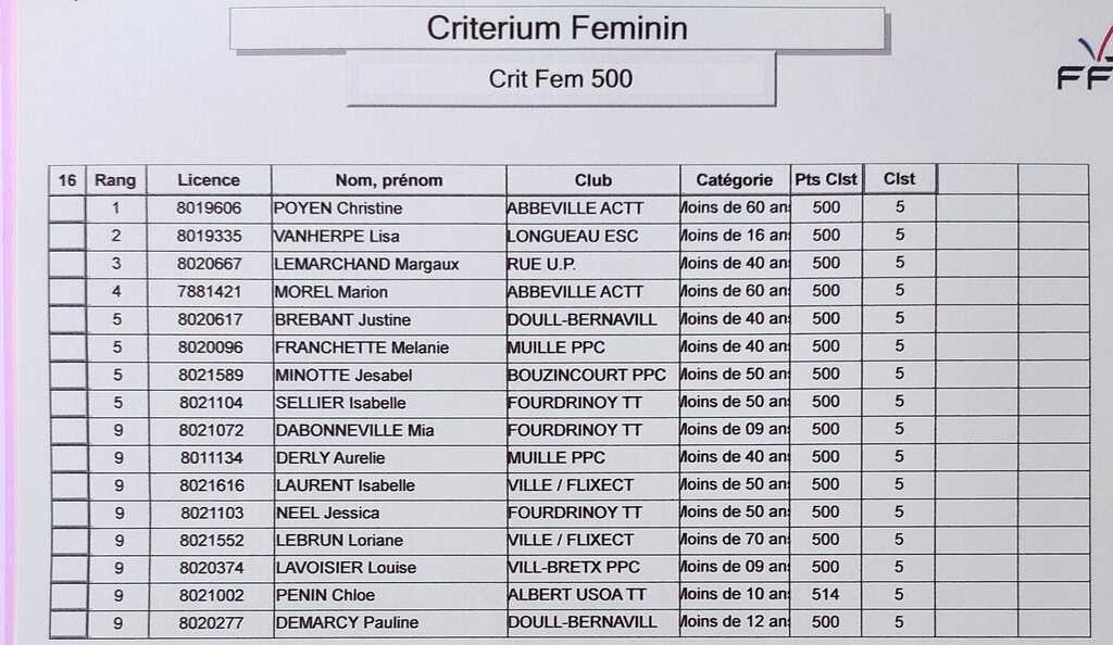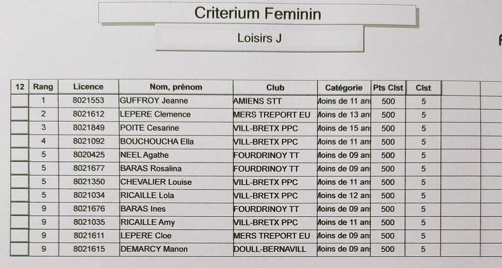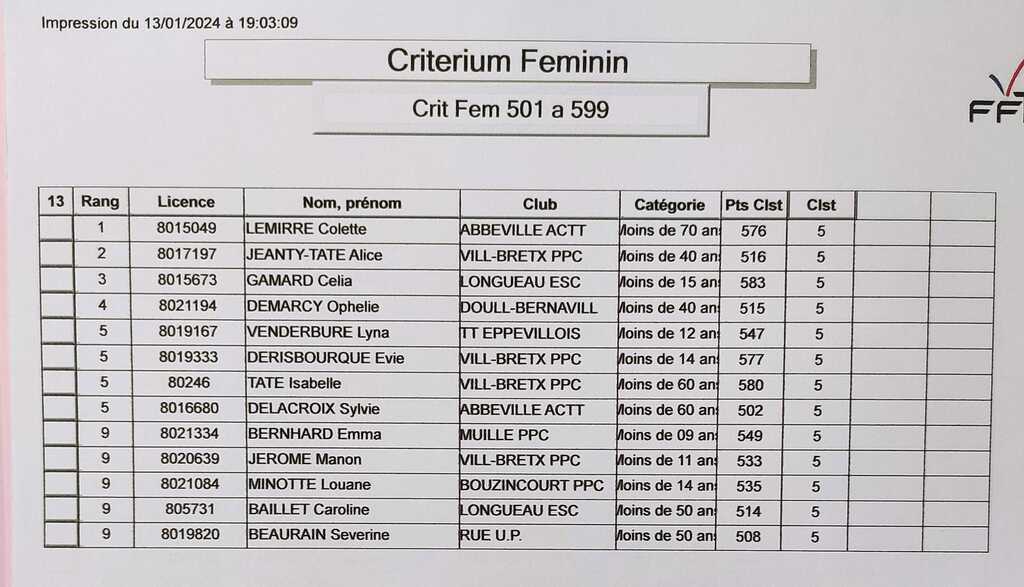 Critérium Féminin du 13 Janvier 2024