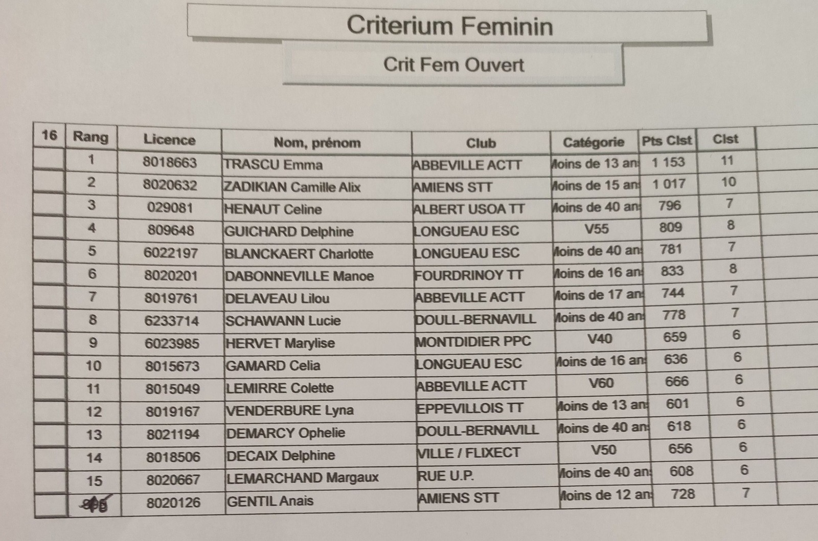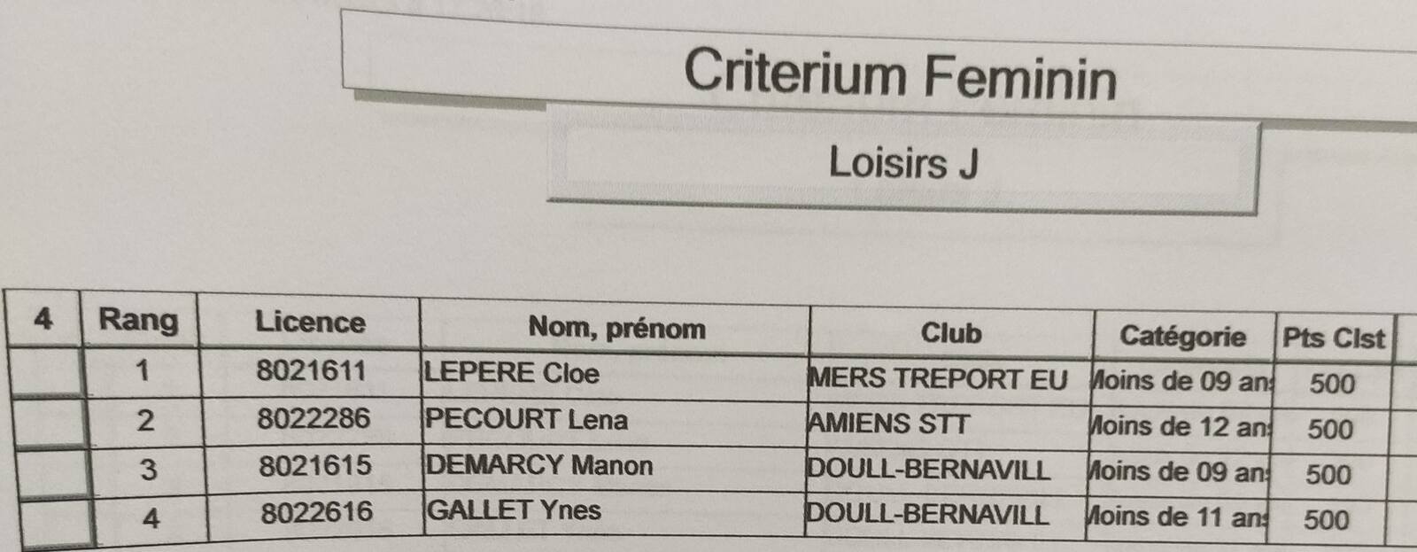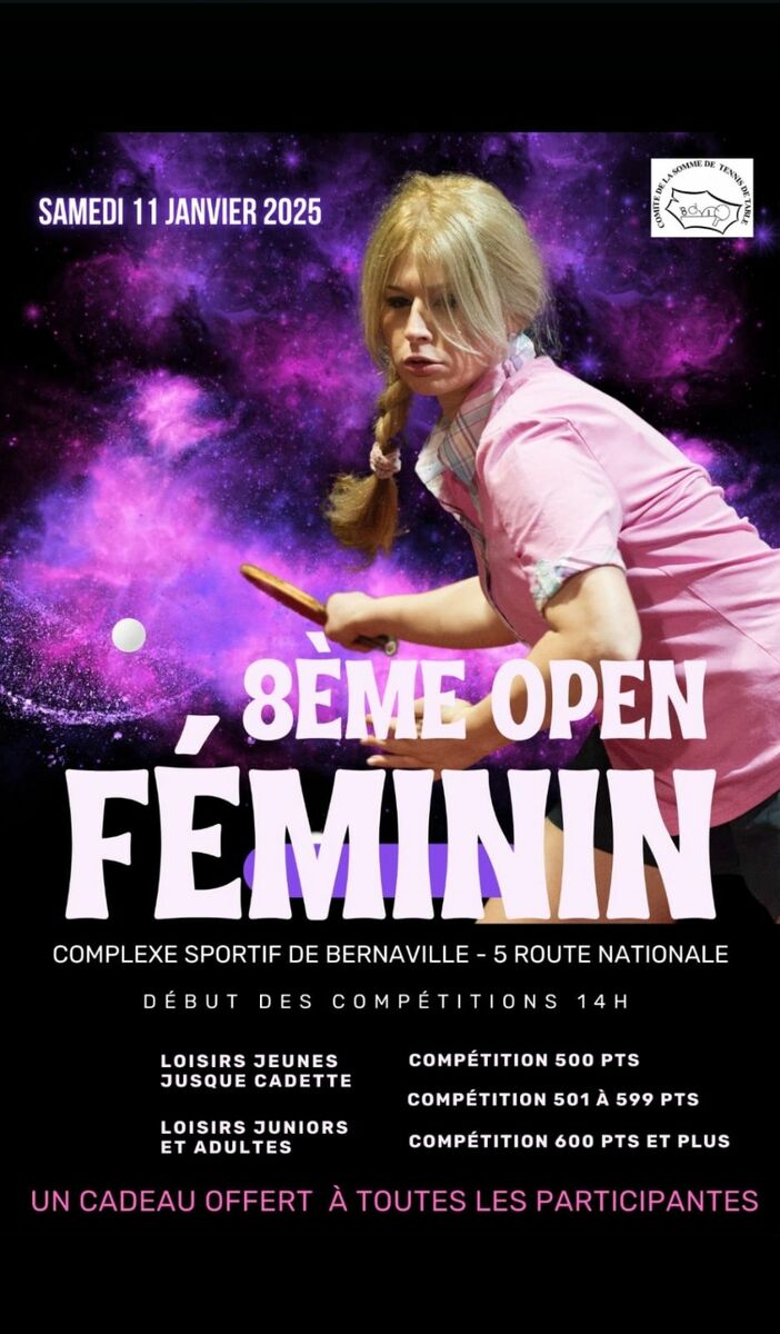 Les résultats de l'OPEN Féminin qui s'est déroulé le Samedi 11 Janvier 2025 dans la salle de Bernaville.