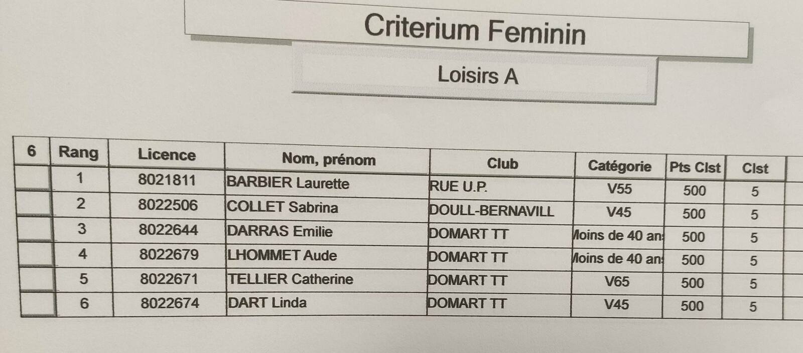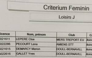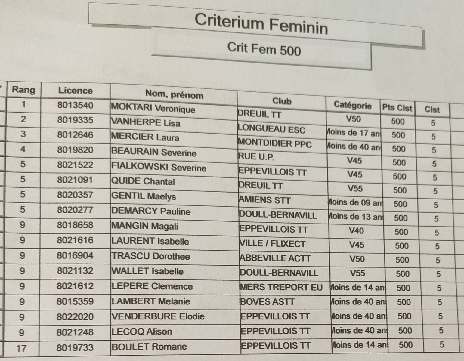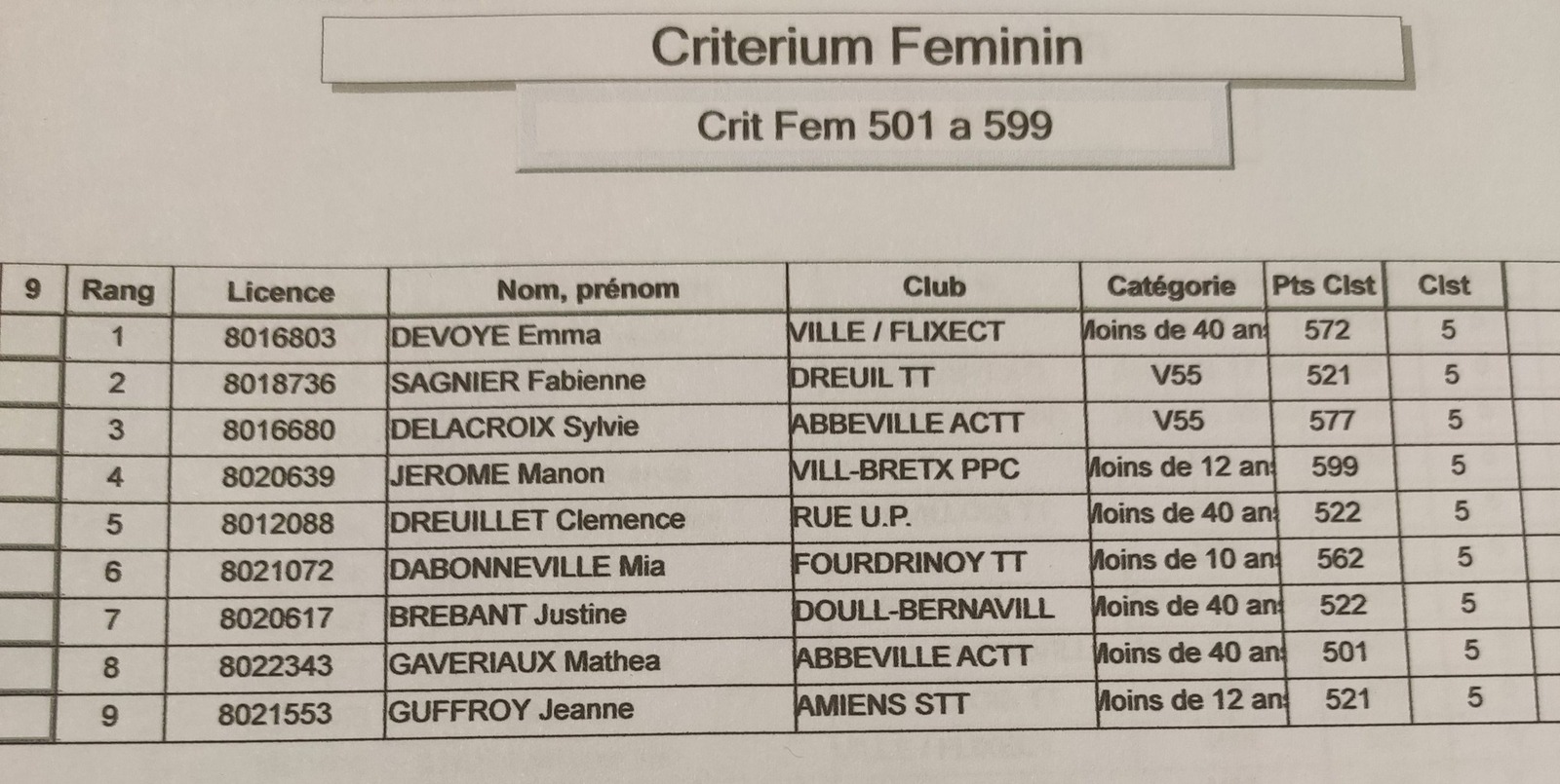 Les résultats de l'OPEN Féminin qui s'est déroulé le Samedi 11 Janvier 2025 dans la salle de Bernaville.